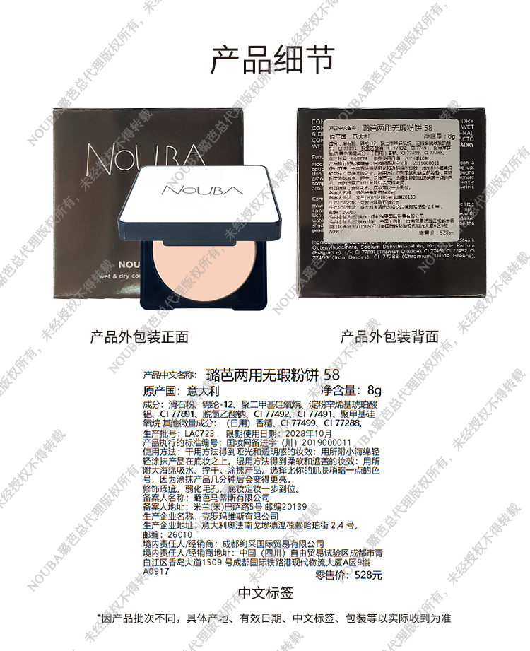 无瑕粉饼58号